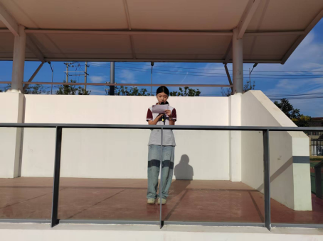 为进一步传递家国情怀,八年级3班李子衿同学带来朗诵《不朽》。她以饱满的情感、铿锵的语调,深情回顾了革命先辈的不朽事迹,歌颂了他们为国家和人民无私奉献的崇高精神,字字句句饱含对先辈的缅怀与敬意,让在场师生深刻感受到“不朽”的精神力量,再次点燃了大家心中的爱国热情。