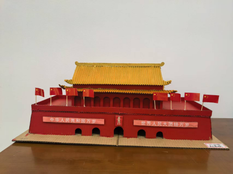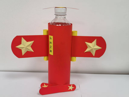 在“创意手工坊,绿色送祖国”赛道中,学生们充分发挥想象力,将废旧物品“变废为宝”:用红色彩纸叠出飘扬的国旗,用塑料瓶制作出精致的火箭模型,用月饼盒搭建起“中秋团圆屋”……一件件作品不仅充满环保理念,更融入了对家国节日的独特感悟。