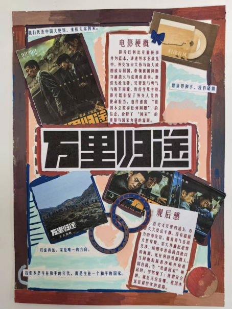 “双节观影小达人”红色电影推荐卡赛道上,学生与家长共同重温红色经典,将观影感悟凝聚在一张张A4纸上。推荐卡中,既有《长津湖》《觉醒年代》等经典影片的深度解读,也有“愿以吾辈之青春,捍卫盛世之中华”的深情寄语,图文并茂的设计兼具美感与思想性。