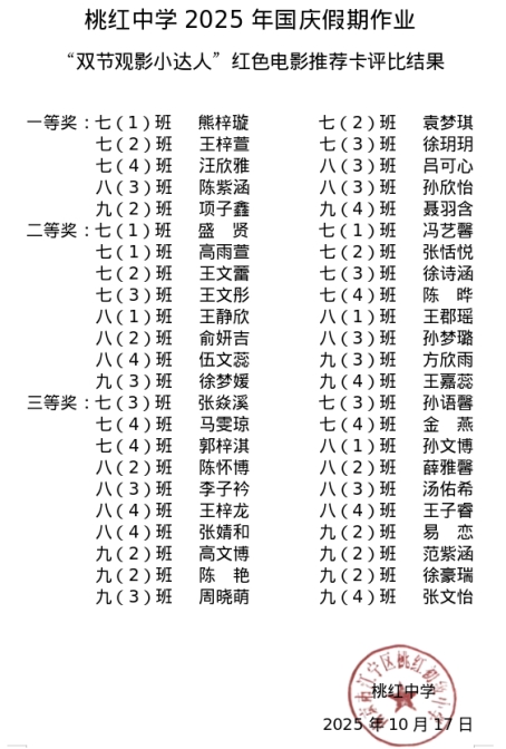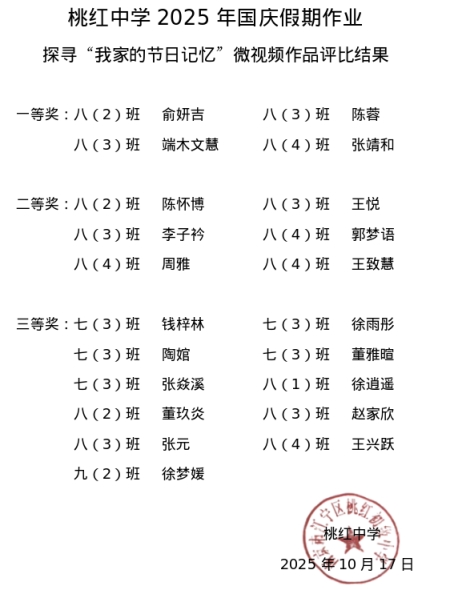 江宁区桃红初级中学国庆假期作业评比圆满落幕,三大赛道奖项揭晓