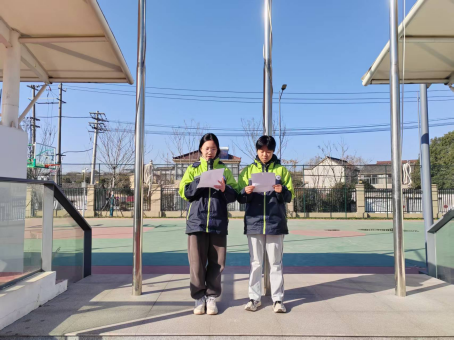 本周的升旗手是八年级3班的端木文慧同学和夏金涛同学。端木文慧同学身兼班级语文课代表与体育委员,不仅成绩优异、学习态度端正,课堂上积极思考、作业认真细致,是师生公认的优秀榜样,还兼具活泼开朗的性格,热爱歌舞,实现全面发展;夏金涛同学担任班级信息课代表,性格开朗乐观,秉持热爱学习的初心,成绩优异且持续进步,用勤奋践行成长追求。